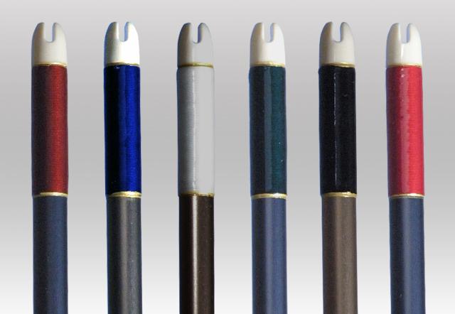 巻藁矢の写真はイメージです。納期は約10日かかります。シャフトを切った後はキャンセルはお受けできませんのでご注意ください。矢尻を付けると矢尺より1cm程度長くなりますオーダー製作 2015・1913 巻藁矢巻藁矢の写真はイメージです。<矧糸番号>下記の項目を写真を参考にしてご指定下さい。1)シャフトの色 (黒・シルバー・茶・グレー)2)シャフトのサイズ(1913・2015)3)矧ぎ糸の色4)筈の種類 天弓筈(白・黒・赤・青・グレー・ブラウン・透明)5)矢尺(矢の長さ)は初心者の方は矢束プラス10cmから15cm 指導者によくご確認下さい。・納期は約10日かかります。・お客様ご指定のサイズにシャフトを切った後はキャンセルはお受けできませんのでご注意ください。・当店では矢尺を筈の先端からシャフト先端までとしております。(下図ご参照ください。)・矢尻を付けると全長は1cm程度長くなりますのでご注意下さい。 (矢尻の先端は使用しているうちにすり減ってくるため矢尺には含めておりません。)※矢尺は指導者に良くご相談下さい。こちらの商品は棒矢になりますので羽根はついておりません。上記は矢尺確認の為の参考イラストです。