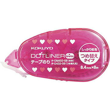 【メール便対応】コクヨ テープのり ドットライナーキュートハート柄(本体)タ-DM455-08 【しっかり貼るタイプ】