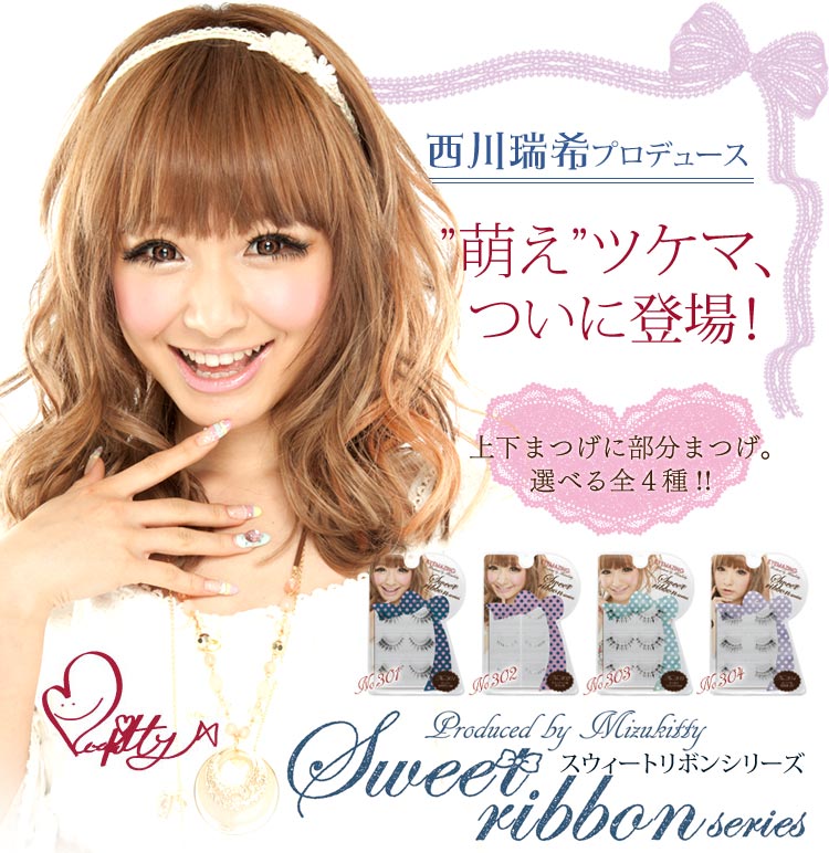 送料無料 ポイント5倍 !! 【みずきてぃ Sweet ribbon SERIES 】 西川 瑞希 プロデュース スウィート リボン ♥ 【 萌え つけま☆ 】 ついに登場★ 鉄板 みずきてぃ eye ★ つけまつげ ♥ NO.301 302 303 304