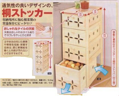野菜類の保存に 桐ストッカー デザイン野菜ストッカー4段